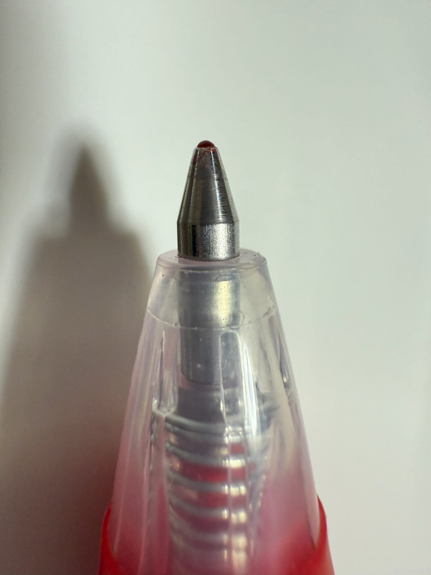 以下は、ボールペンの先にピントを合わせて撮影したマクロ写真です。iPhone 16 Pro MAXと比較したところ、AQUOS R9 proは輪郭がくっきりきれいに撮れています。