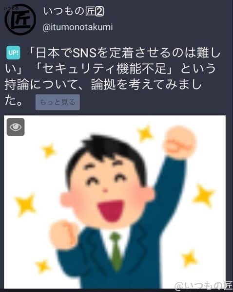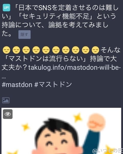 トゥートすると、上の画像のように画像部分が隠れます。