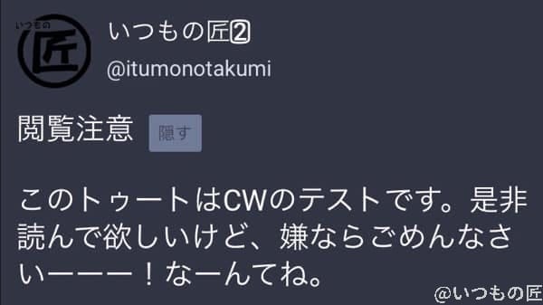 トゥート本文が隠れることを利用して、一発ネタでフォロワーを笑わせるのに使えます。