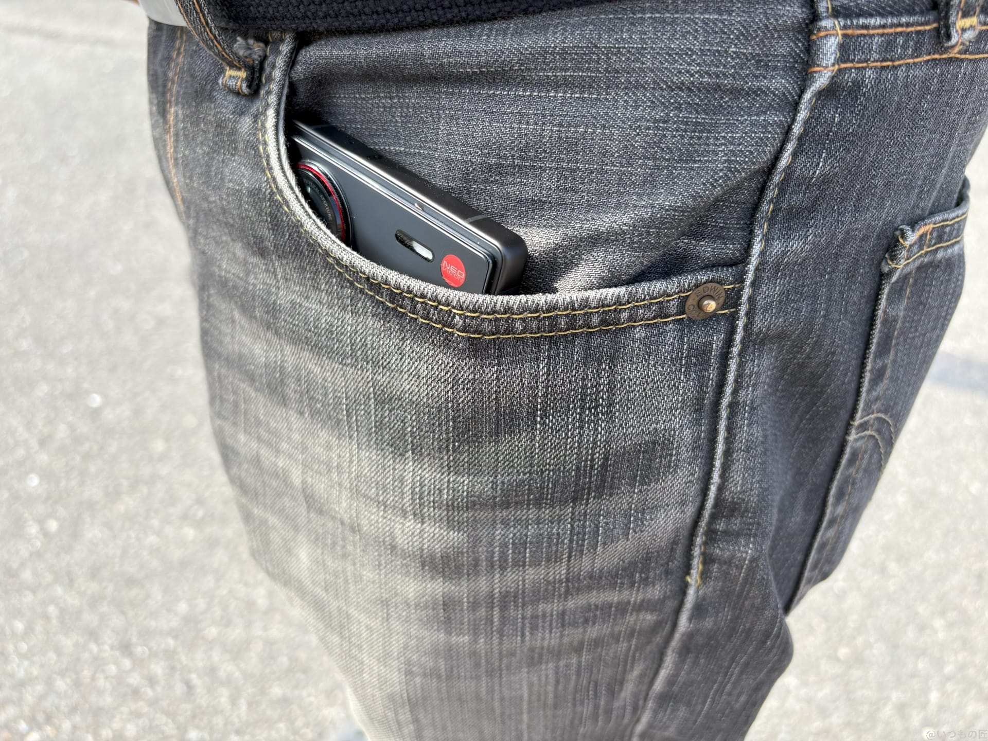 男性のジーンズのポケットには余裕で収まりまります。しかし、女性のスキニージーンズだとポケットからはみ出し、落下の危険があるため注意が必要です。