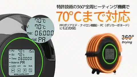 旧モデル「SUNLU FilaDryer S1」の販売経験を経て、必要な機能はすべて詰め込んだハイスペック機になっています。
